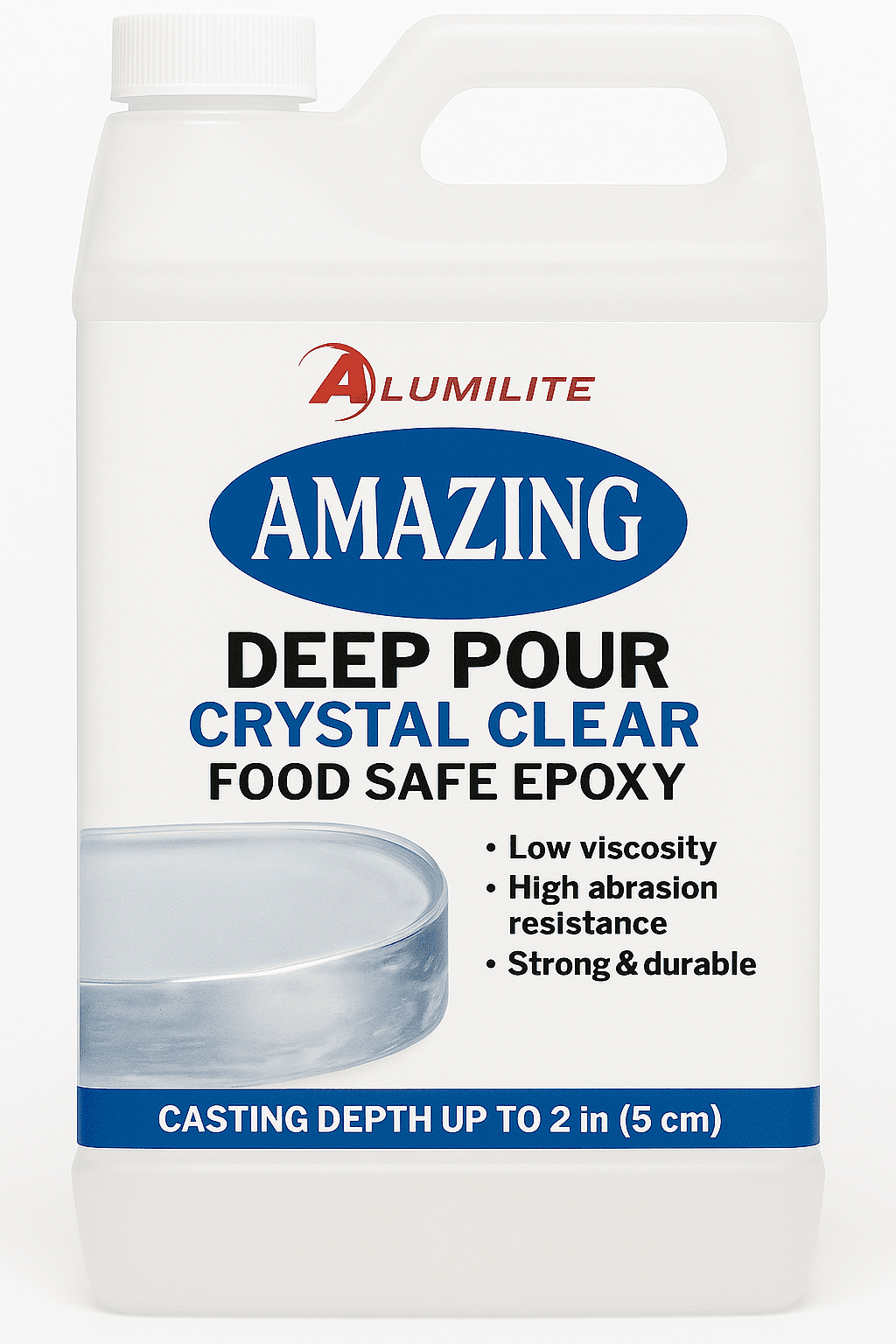 Amazing Deep Pour של חברת Alumilite מארה”ב הוא שרף אפוקסי קריסטלי דו-רכיבי המיועד ליציקות עמוקות במיוחד – עד 5 ס”מ בשכבה אחת. החומר מתאפיין בשקיפות גבוהה, חוזק יוצא דופן ועמידות בפני שריטות ושחיקה, מה שהופך אותו לבחירה אידיאלית לפרויקטים כגון שולחנות “ריבר”, פרגולות מעוצבות, קונסטרוקציות עץ, יציקות עם פרטים עדינים ועוד.
